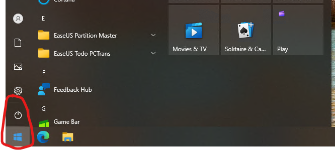 Do you have Windows 10 or Windows 11? Look where the power button to shut down is at. With Windows 10, it is right above the start menu button, on Windows 11 they have moved it to the right side.